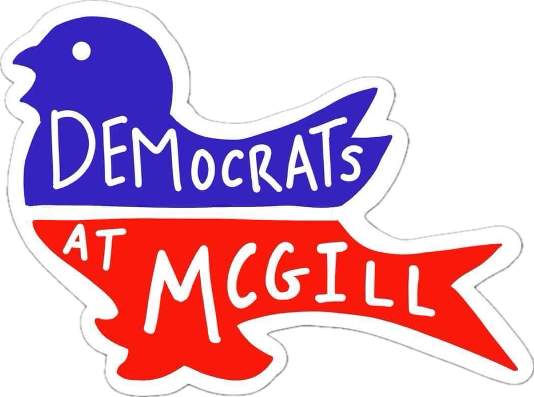 Democrats at McGill is a politically active club on campus that assists U.S students in registering to vote, mailing in ballots, and accessing resources for Americans within Montreal. Additionally, the club hosts a variety of events, including phone banking for democratic candidates, letter writing, and social events to discuss politics. Democrats at McGill places a strong emphasis on creating a safe, inclusive, and welcoming community for all students, regardless of nationality, who are passionate about social activism. We encourage all who are willing to fight for progressive policies and learn about the Democratic Party to join our club.