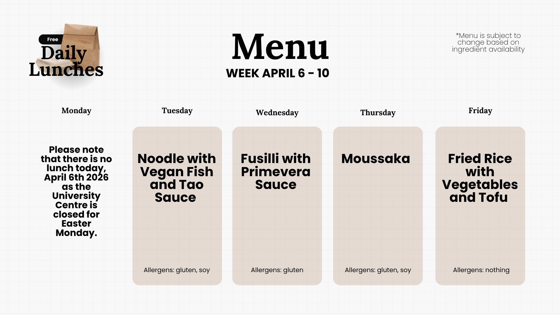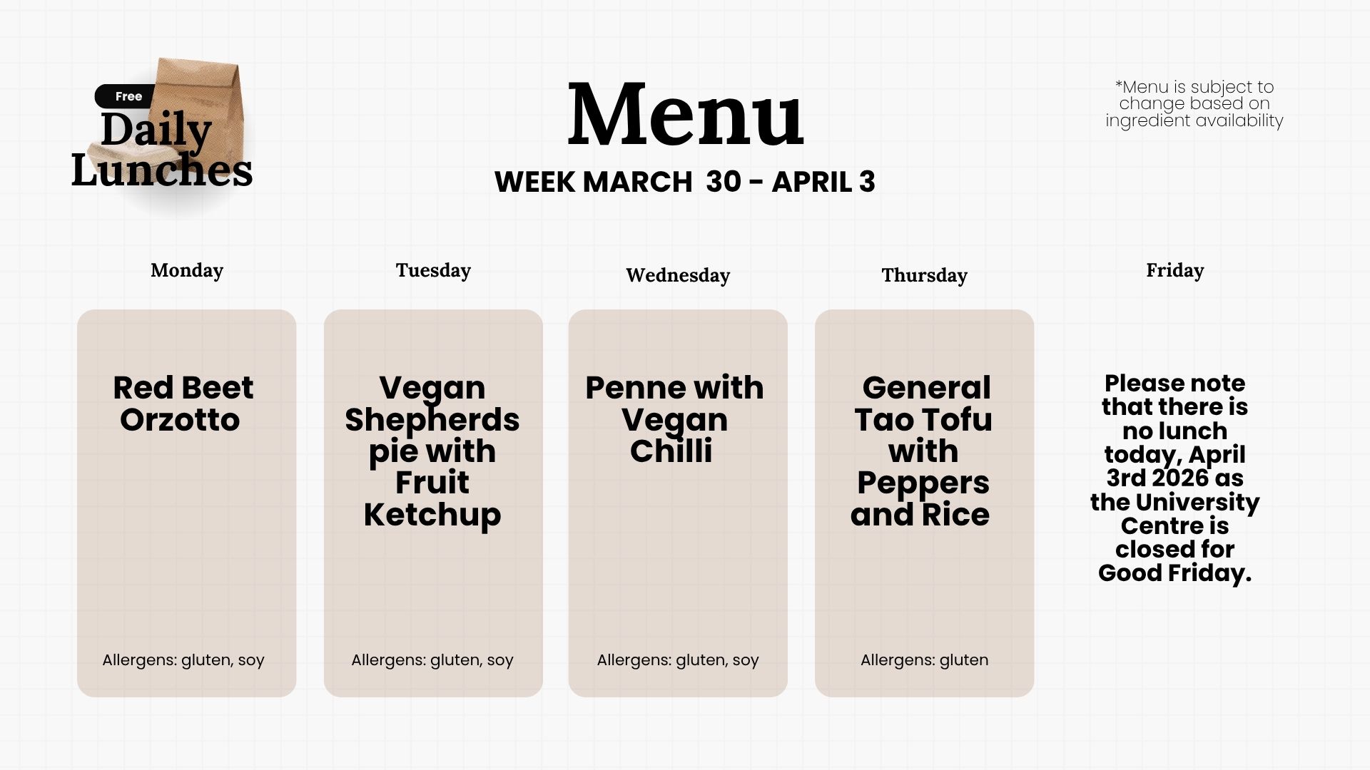 To help reduce food insecurity on campus while we restructure the free meal service program, SSMU is offering free vegan...